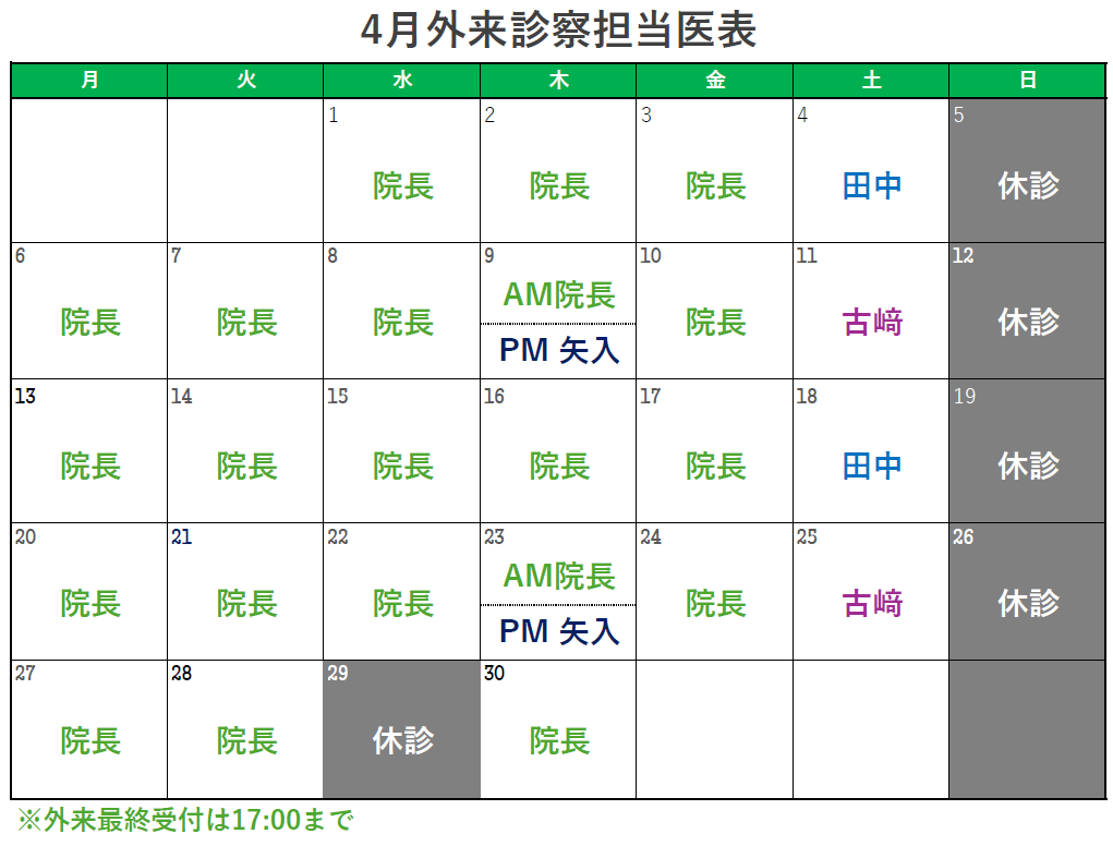 4月外来診察担当医表