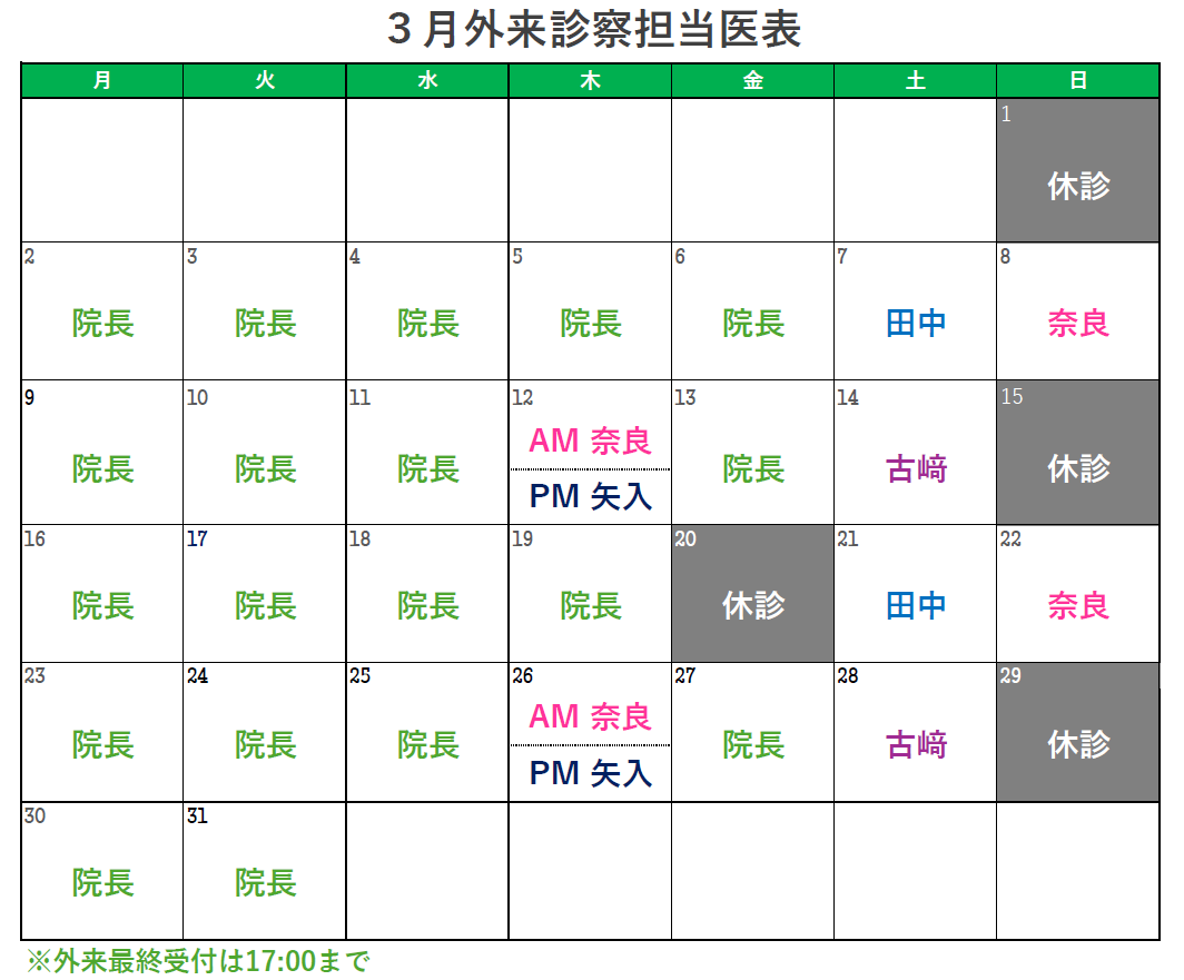 3月外来診察担当医表